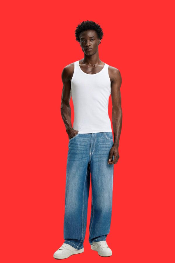 Amplios, cómodos y con toda la actitud urbana. Denim claro, costuras contrastantes y flow noventero. ¡Haz que tu estilo destaque sin límites!
