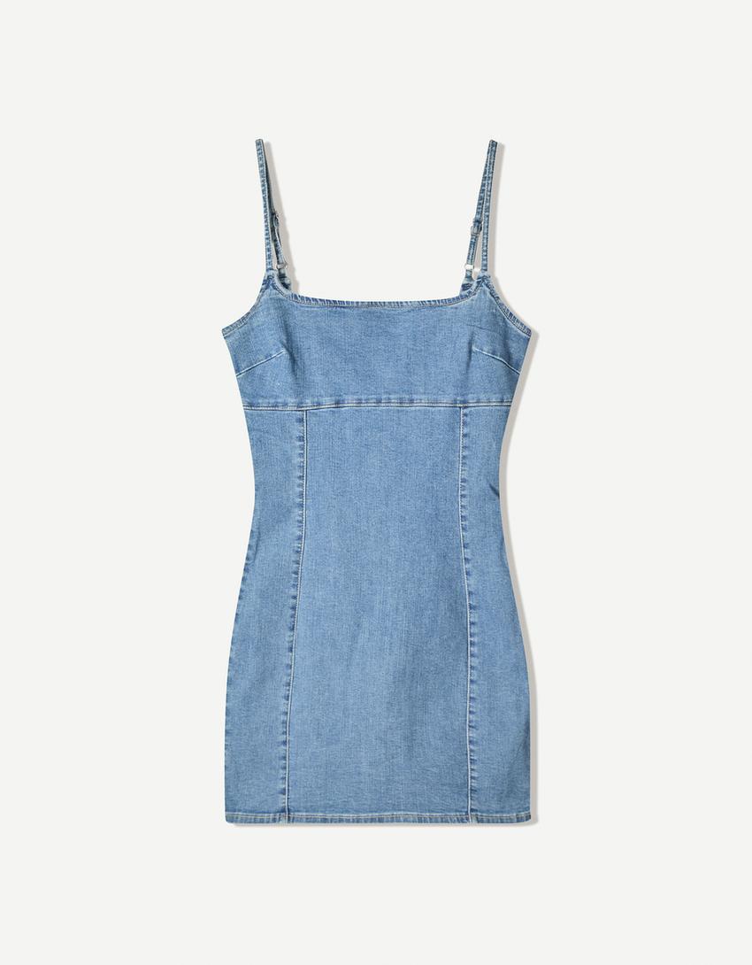 Corto, ajustado y con toda la actitud. Denim stretch, tirantes finos y costuras que definen tu figura. Urbano, sexy y listo para romperla.